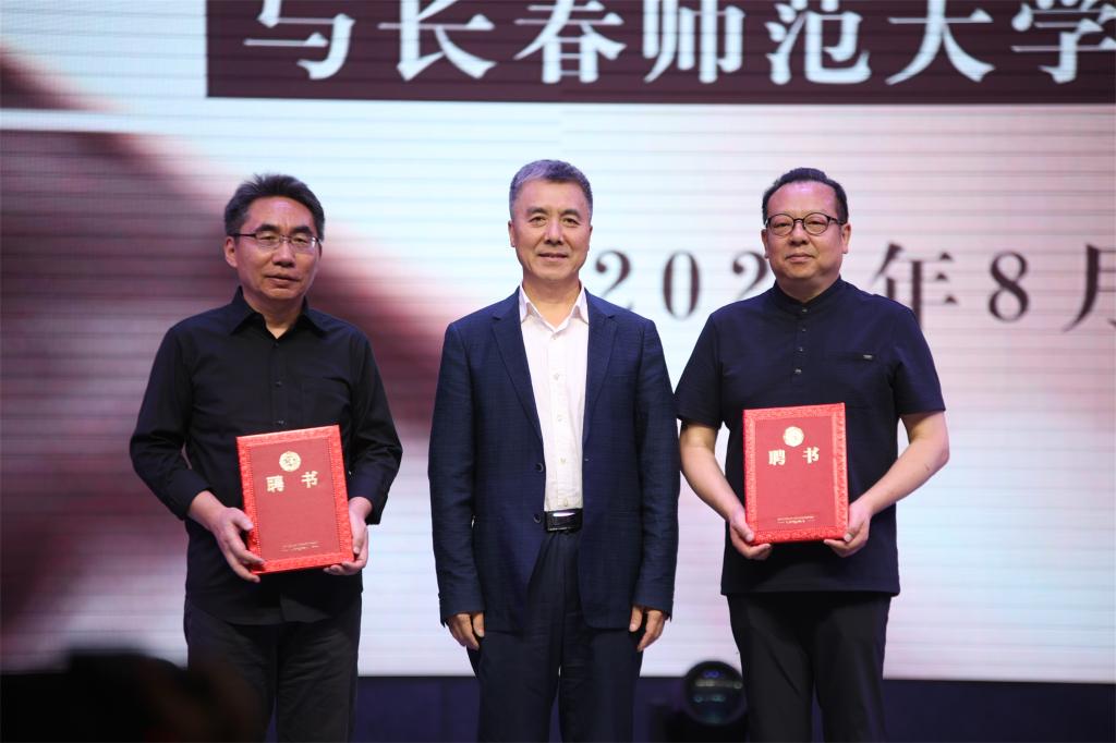 交流互动后,张德利为胡智锋、王海洲颁发聘书,聘请胡智锋担任文旅与电影学院学术委员会主任、王海洲担任文旅与电影学院学科办主任。