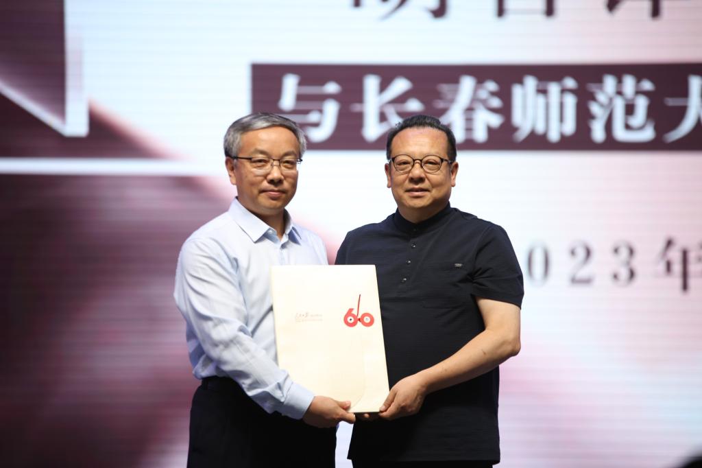 随后,胡智锋向学校赠送了《人民日报》60年创刊号,王海洲向学校赠送了《人民日报》70年创刊号。